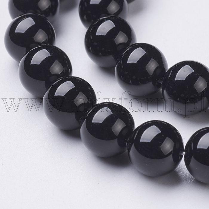 Koraliki Naturalny Czarny Onyks, klasa A, Okrągły, 8mm, około 45szt/36cm/sznur (13WB30870)Kolor: