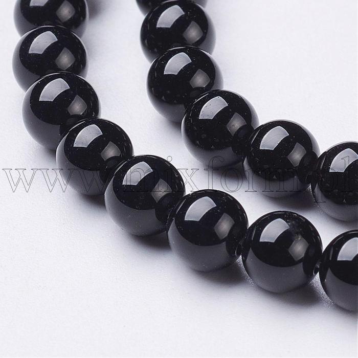 Koraliki Naturalny Czarny Onyks, klasa A, Okrągły, 6mm, Otwór: 1mm, około 60szt/36cm/nić (13WB30871)Kolor: