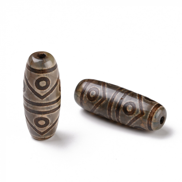 Koraliki Tybetański Styl, Dzi 8 Oczek, Naturalny Agat, Termobarwione, Owalne, 28.5-32x10-12.5mm, 1szt (13WB31319)