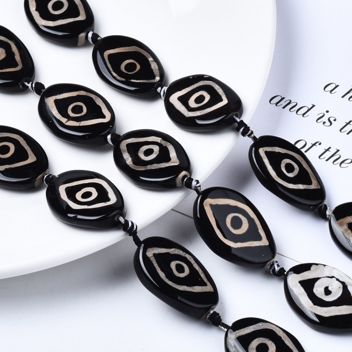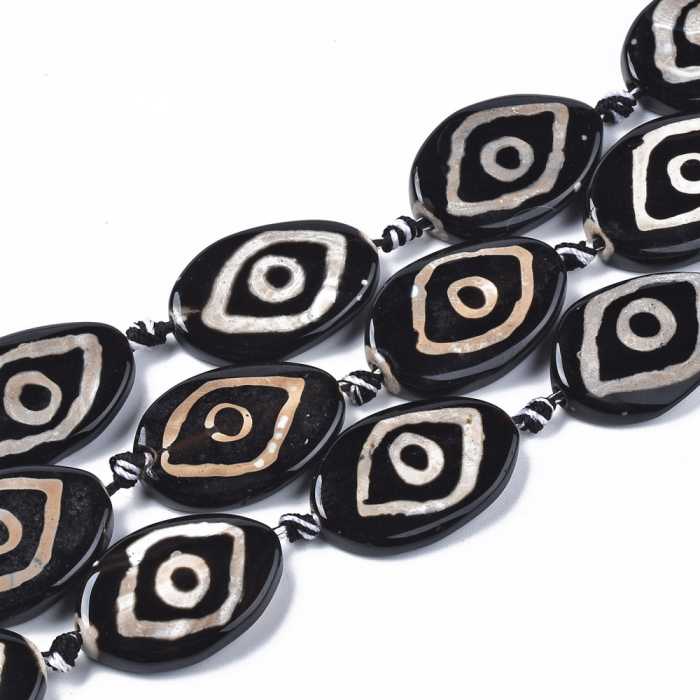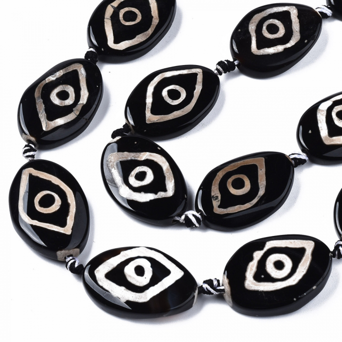 Koraliki Naturalny Agat Tybetański Dzi, 1 Oko, Owalne, na nici, Barwione Kraj pochodzenia kamienia: Brazylia