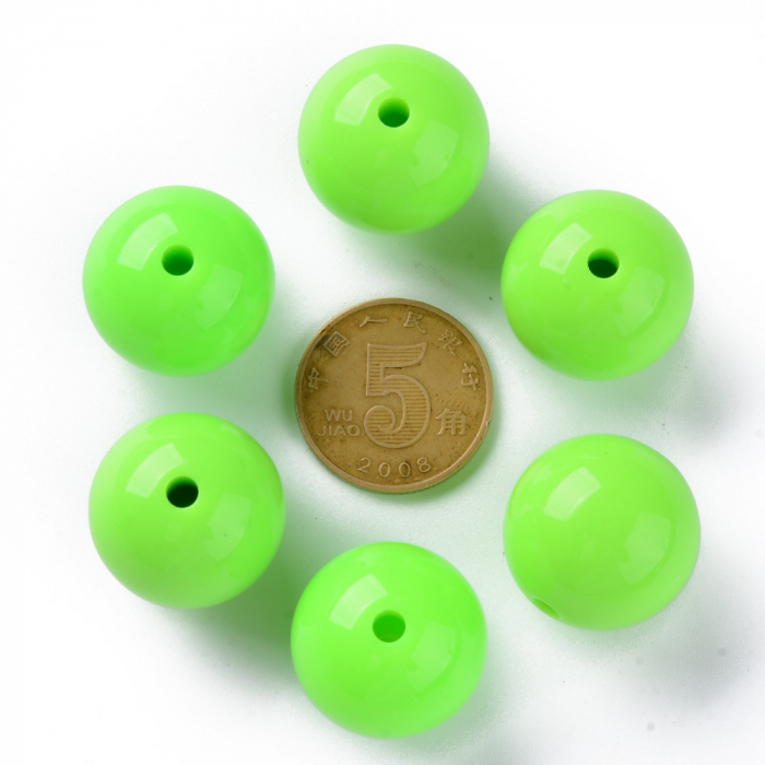 Koraliki Akrylowe Okrągłe Kulki, Limonkowy, 20x19mm, Otwór 3mm, 10szt (13WB31589)
