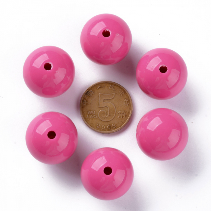 Koraliki Akrylowe Okrągłe Kulki, Kolor Kamelia, 20x19mm, Otwór 3mm, 10szt (13WB31591)