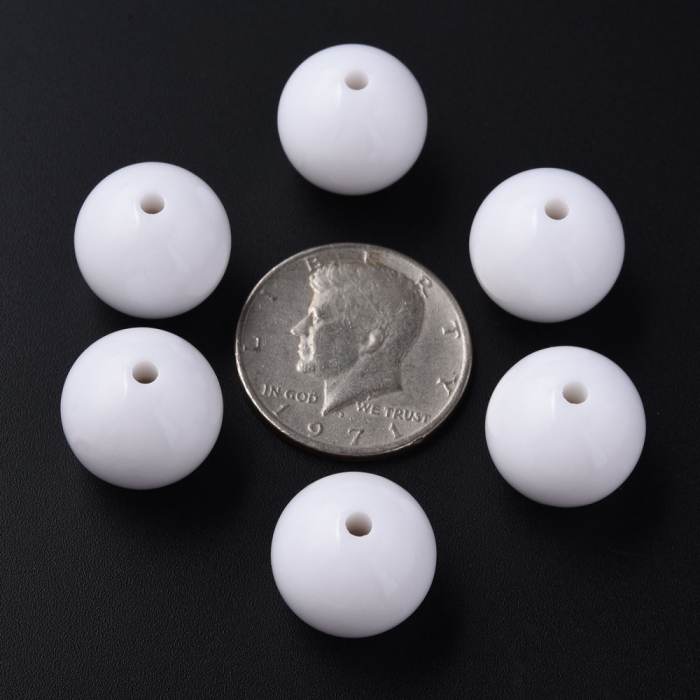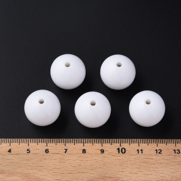 Koraliki Akrylowe Okrągłe Kulki, Białe, 20x19mm, Otwór 3mm, 10szt (13WB31599)