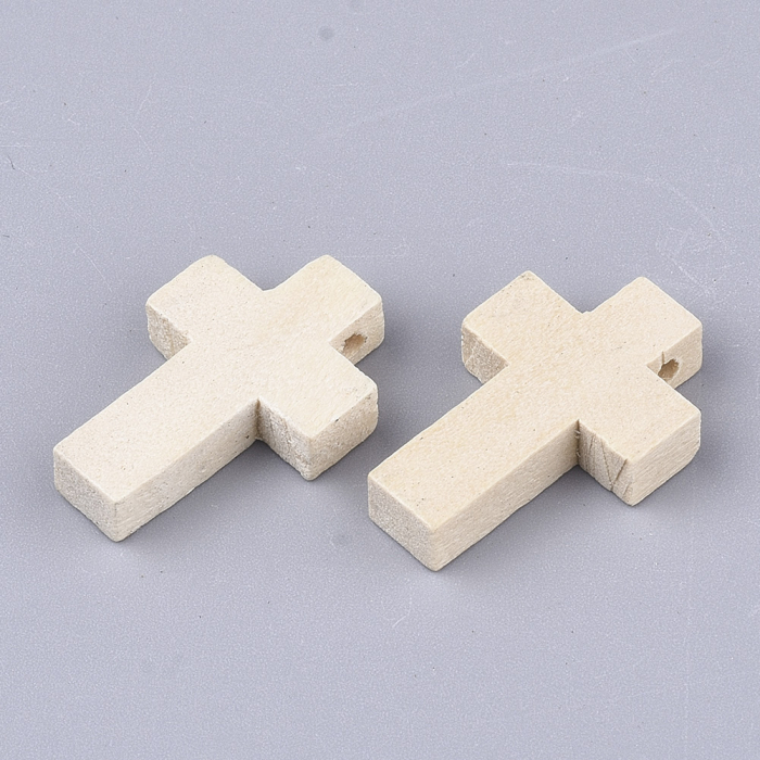 hot Zawieszka Drewniany, Krzyż, Lniany, 21-22x14-15x4-5mm, Otwór: 1.8mm, 20szt (13WB31409)