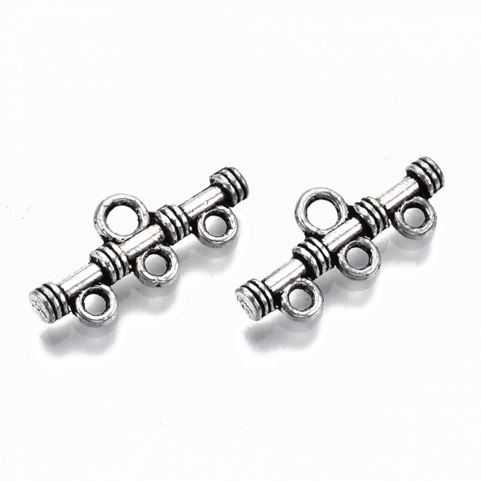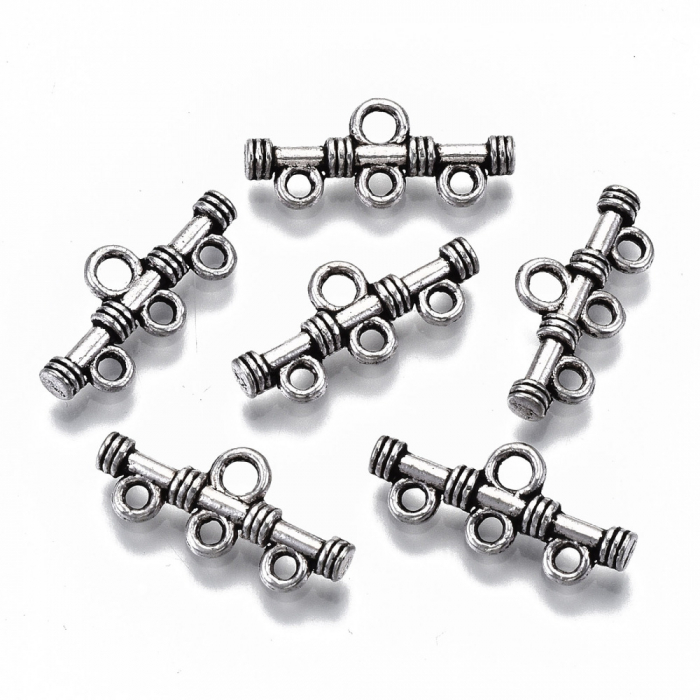 Łącznik Bar, Stop Biżuteryjny, Styl Tybetański, 4 Otwory, Antyczne Srebro, 9x20x3mm, 20szt (13Z31417)