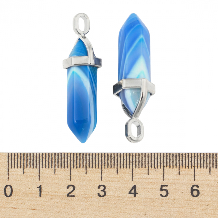 Wisiorek Zawieszka, Naturalny Agat Pasiasty, Podwójny Stożek z Metalową Czapeczką, 37-40x12mm, 2 szt (13WB31454)