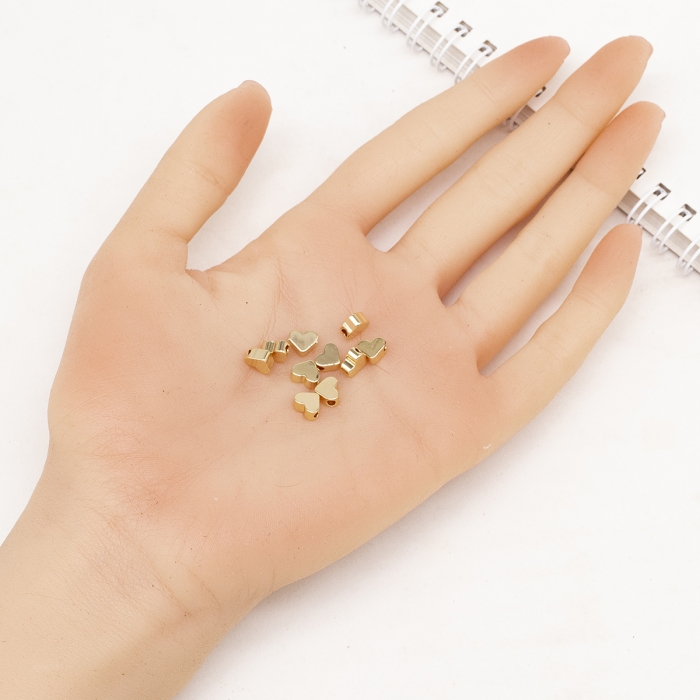 Koraliki Mosiężne Serce, Pozłacane 18K, 6x7x3mm, Otwór 1mm, 10 szt (13WB31460)Kolor:
