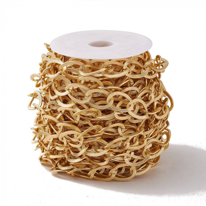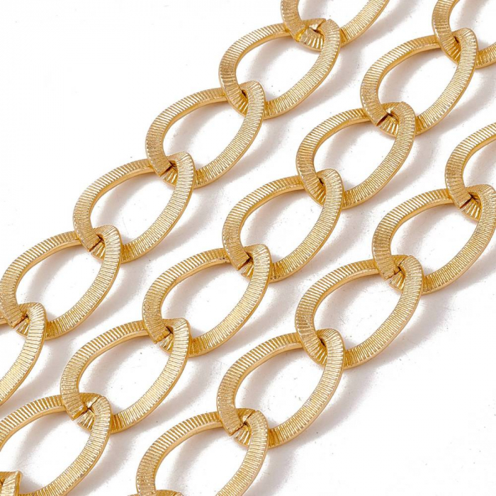 Łańcuch Aluminiowy Dekoracyjny do Rękodzieła, Teksturowany, Złoty, Duże Ogniwo 24.5x18.5 mm, 1m (13WB31561)