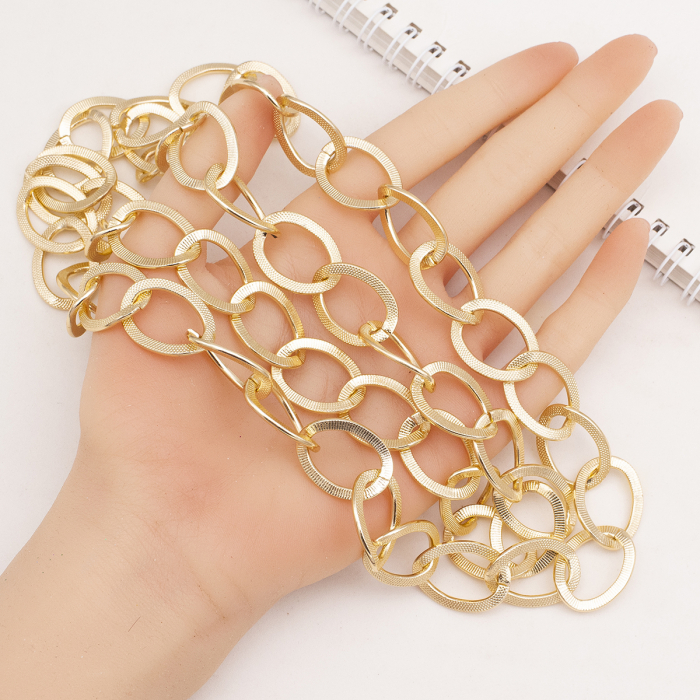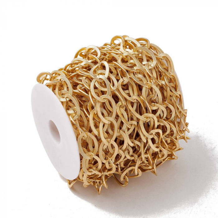 ✔Gwarancja jakości ✔Szybka dostawa ✔Wygodne zamawianie ★ Łańcuch Aluminiowy Dekoracyjny do Rękodzieła, Teksturowany, Złoty, Duże Ogniwo 24.5x18.5 mm, 1m (13WB31561) w MixForm ➨ Masz czas na zakup w korzystnej cenie!