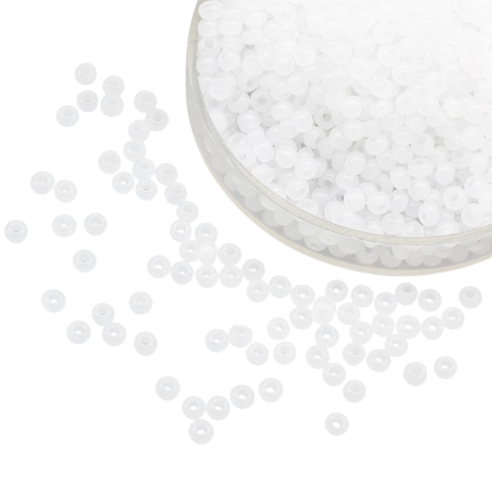 Koraliki 02090 Czeski Preciosa 10/0, Naturalny Nieprzezroczysty NO, Biały, Okrągły 50 g (3WB3652)