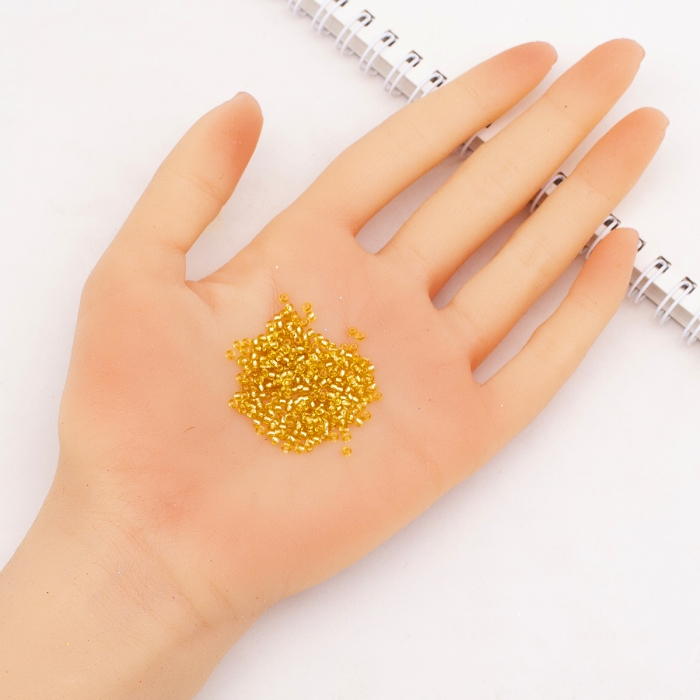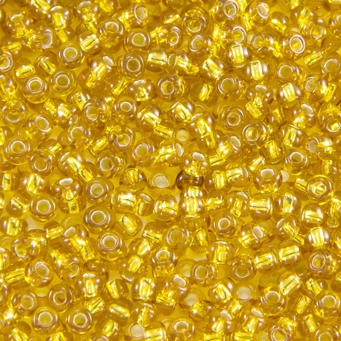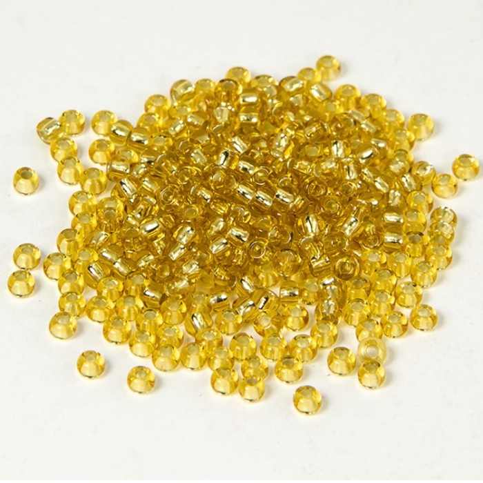 Koraliki 17020 Czeskie Preciosa 10/0, Przezroczyste ze Srebrnym Paskiem, Złote, Okrągłe, 50g (3WB1967)