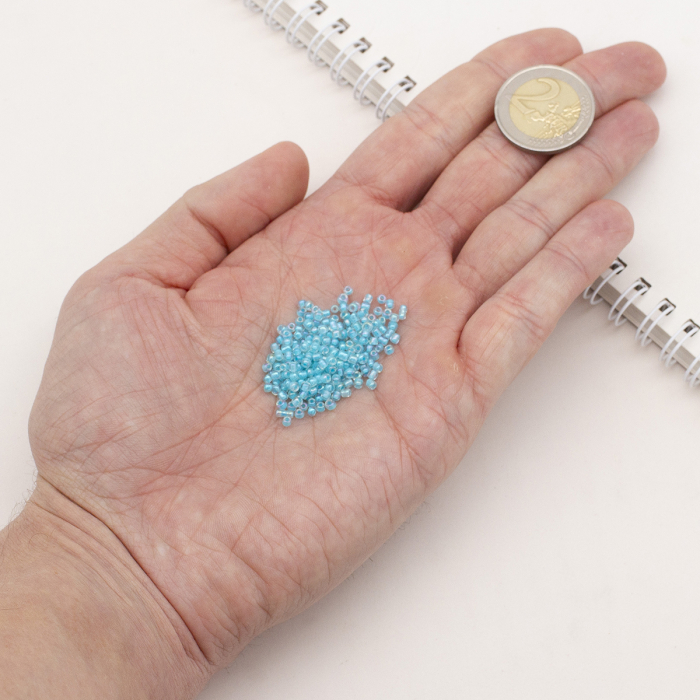 Koraliki Chińskie 12/0, Przezroczysty Tęczowy Barwiony Wewnątrz, Niebieski 215, Okrągły, 100g (2WB28067)