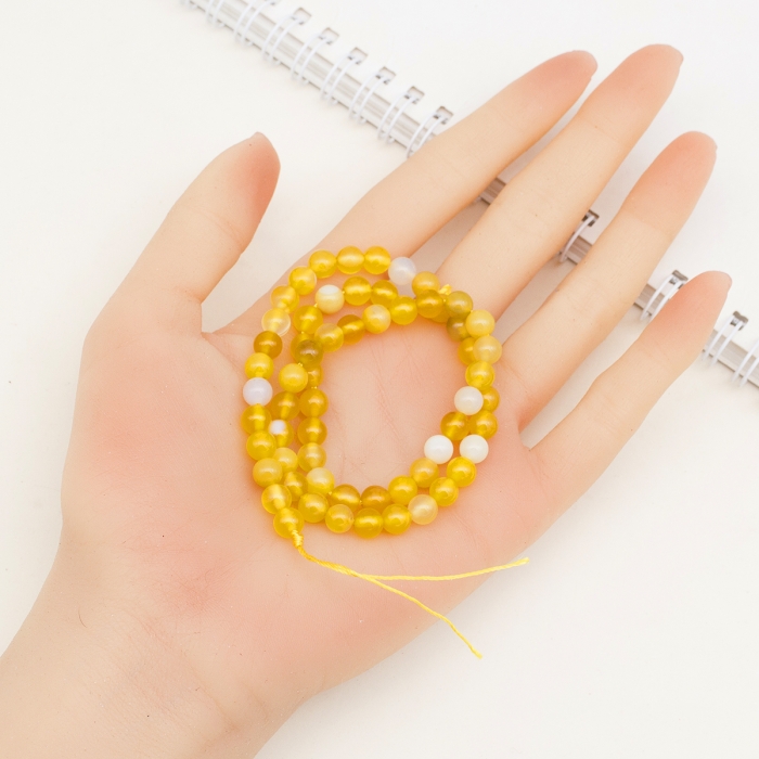Koraliki okrągłe wykonane są z naturalnego agatu pasiastego klasy A. Kamienie klasy A wyróżniają się wysoką jakością, minimalną ilością defektów oraz głębokimi, naturalnymi wzorami. Koraliki agatowe mają wyraźne paski i czystą fakturę, co czyni je szczególnie atrakcyjnymi do tworzenia wysokiej klasy biżuterii. Dzięki procesowi barwienia na gorąco kamienie uzyskują bogate odcienie różu, fioletu i burgunda, które podkreślają naturalne piękno agatu pasiastego. Agat uważany jest za kamień harmonii, ochrony i wewnętrznej równowagi. Pomaga redukować poziom stresu, wzmacnia stabilność emocjonalną i sprzyja koncentracji. Agat pasiasty wzmacnia także intuicję i pomaga użytkownikowi osiągnąć wewnętrzny spokój i pewność siebie.