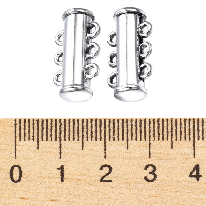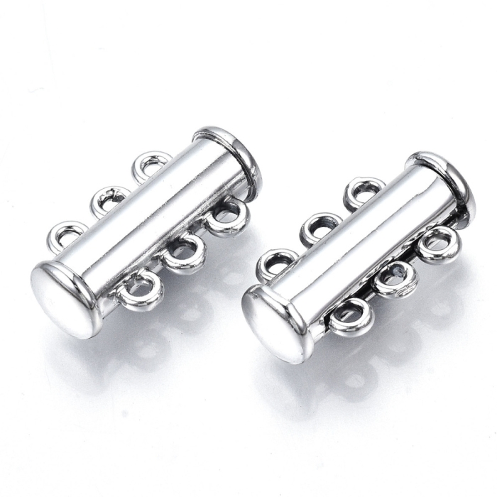 Zapięcie Magnetyczne Suwak, Mosiężne, na 3 nici, Platynowy, 19.5x10.5x6.5mm, Otwór 1.4mm, 2szt, (13WB32954)
