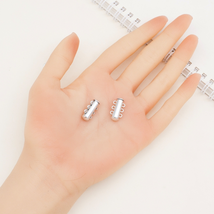 Zapięcia suwakowe wykonane są z wysokiej jakości mosiądzu z powłoką platynową. Posiadają magnetyczne połączenie i rurkowaty kształt.