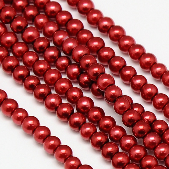 Koraliki Szklane Perłowe 4mm, Błyszczące, Eko Barwione, na Nici Bawełnianej Mieszanej, Okrągłe,