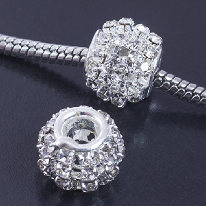 Koraliki Modułowe Charms Mosiądz i Cyrkonie,  Srebro i Kryształ, 12х10mm, 1szt (2WB29539)