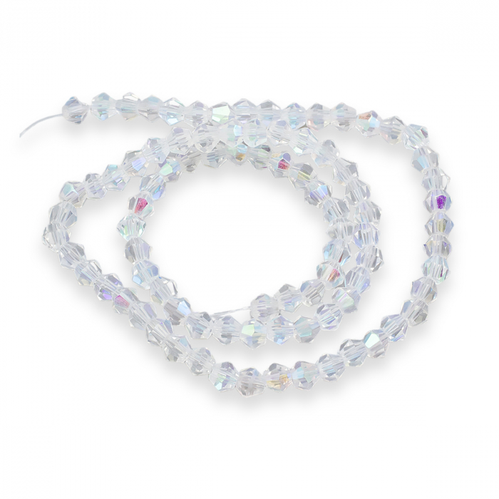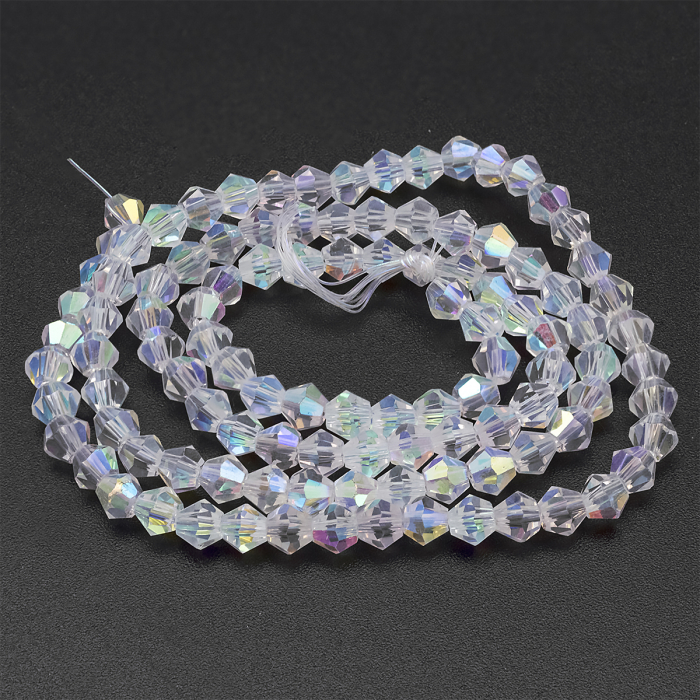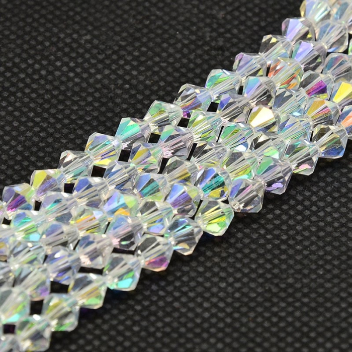 Koraliki Imitacja Austriackiego Kryształu Klasa AA, Szklane, Bicone, Galwaniczne Opalizujące, Powłoka Kolor AB Kolor: Przezroczysty - Tęczowe
