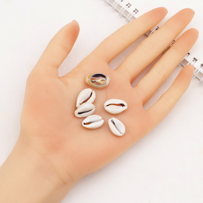 Muszelki kauri bez dziurek to naturalny materiał idealny do tworzenia biżuterii i przedmiotów dekoracyjnych. Muszle są owalne, koloru beżowego, mają gładką powierzchnię i charakterystyczny wąski pysk otoczony drobnymi ząbkami, co nadaje im wyrafinowany i naturalny wygląd. Dzięki wyciętemu blatowi są łatwe w użyciu w rzemiośle i projektach, oferując różnorodne zastosowania.