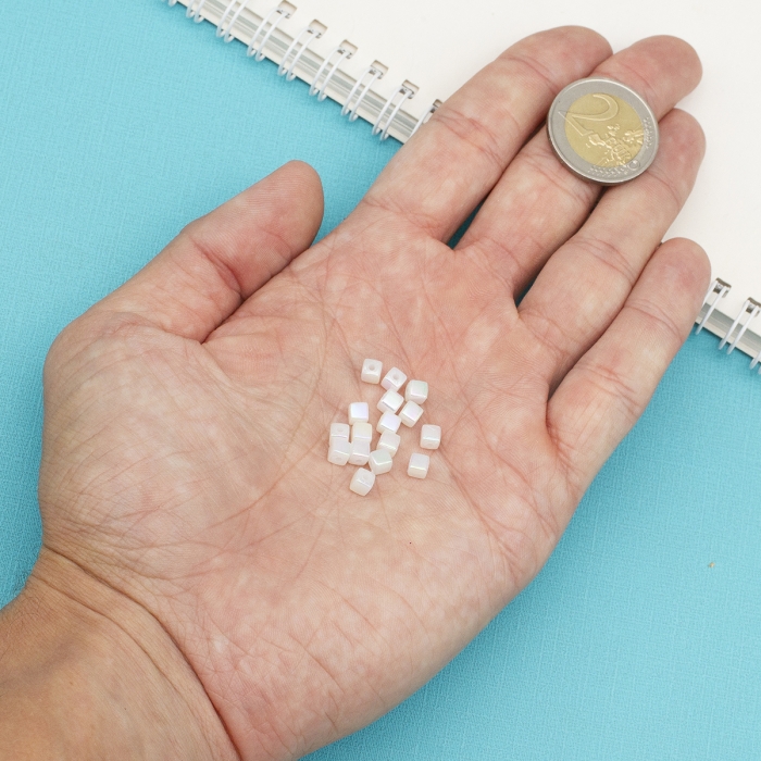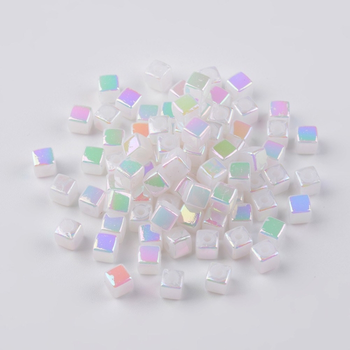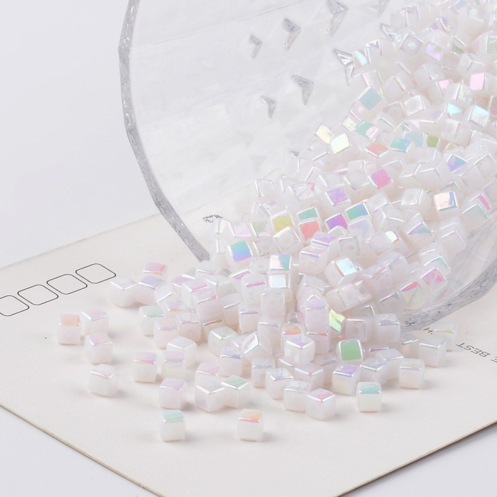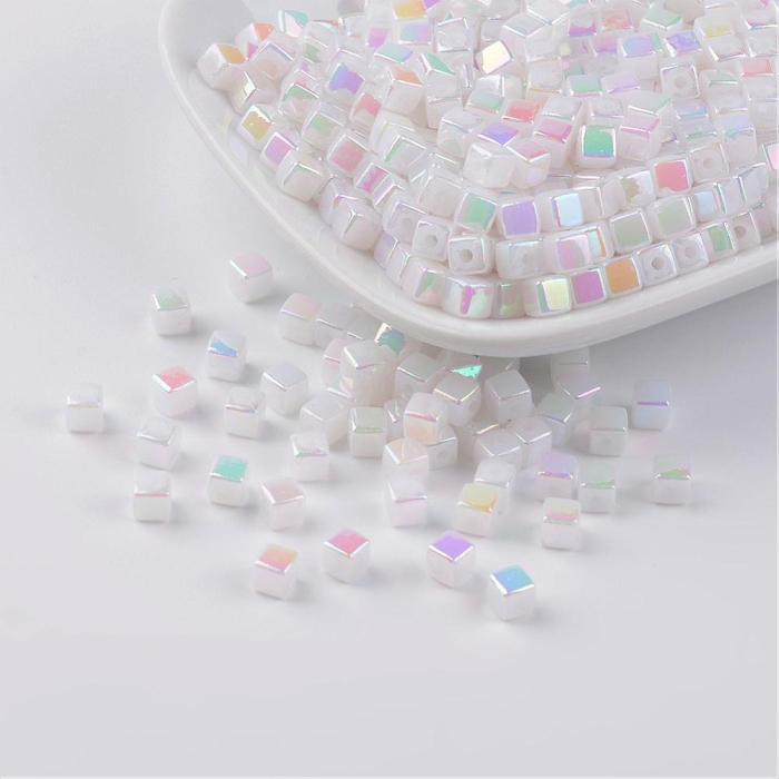 Koraliki akrylowe w kolorze AB to jasne i efektowne koraliki akrylowe w formie kostek z opalizującą powłoką zwaną AB (Aurora Borealis). Powłoka tworzy specjalny opalizujący połysk, który zmienia się w zależności od kąta padania światła, dodając produktom niezwykłego i tajemniczego wyglądu. Koraliki akrylowe są lekkie, trwałe i odporne na zarysowania, dzięki czemu idealnie nadają się do długotrwałego stosowania w różnorodnej biżuterii.