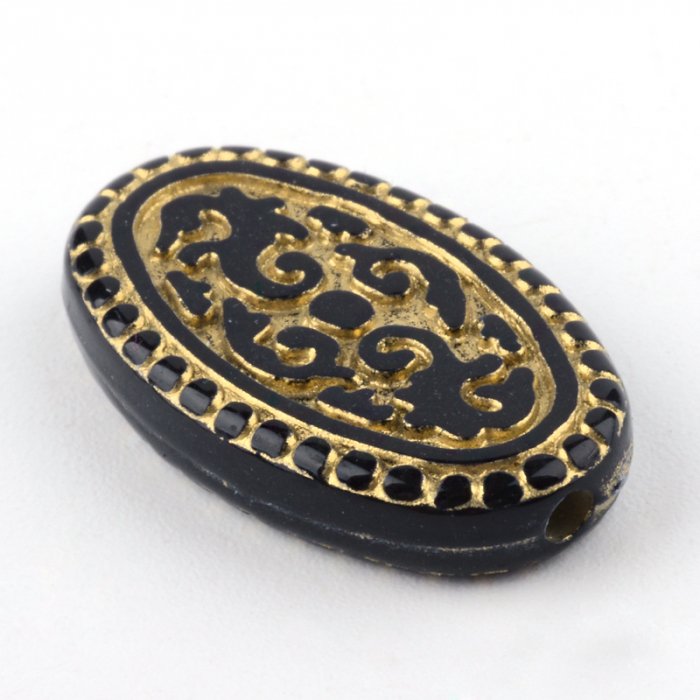 Koraliki Akrylowe "Paris" Owalne, Metaliczny Złoty Wzór,