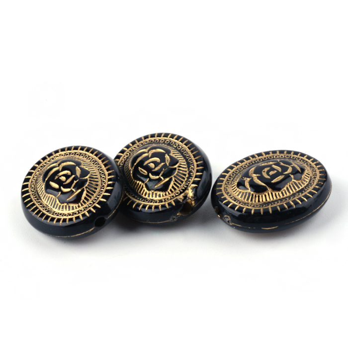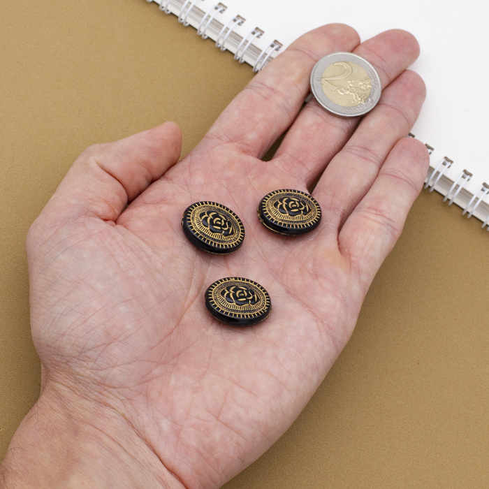 Koraliki Akrylowe "Paris" Okrągłe Płaskie, Metaliczny Złoty Wzór,