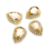 Dżety do Przyszycia w Koszyczku, Szkło i Mosiądz, Kropla, Żółty, 19x14.5x7mm, otwor 1mm, 4szt (13WB29877)