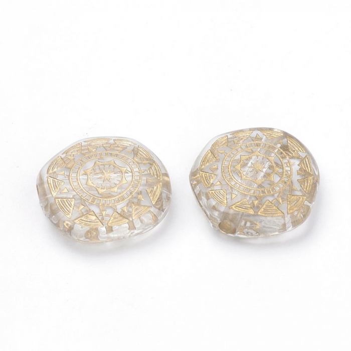 Koraliki Akrylowe "Milan", Wzór Metaliczny Złoty, Płaskie Okrągłe,