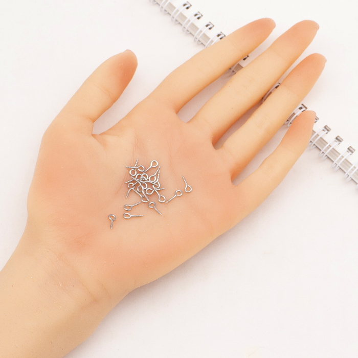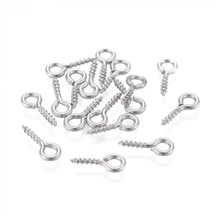 Haczyki Wkręty z Pętlą Stal Nierdzewna, dla Koralików z Półotworami,