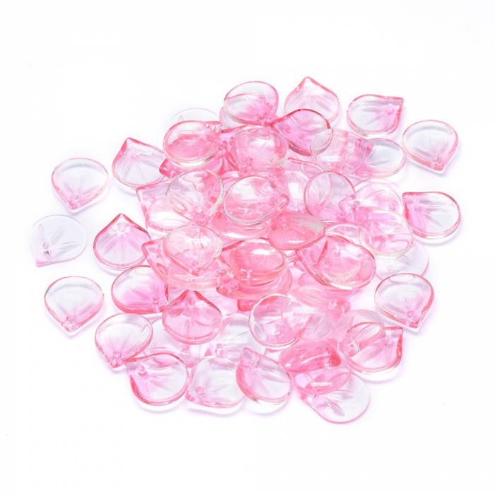Zawieszka Szklana, Płatek, Rozmiar: Długość: 15mm, Szerokość: 13,5mm, Grubość: 4mm, Otwór: 1,2mm Kolor: Różowy 5szt/opakowanie