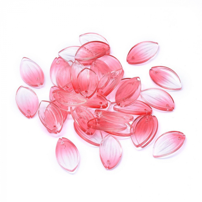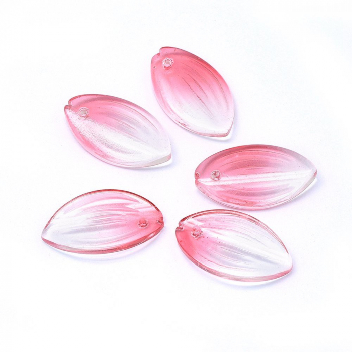 Zawieszka Szklana, Płatek Lotosu, Rozmiar: Długość: 20,5mm, Szerokość: 12mm, Grubość: 2,5mm, Otwór: 1mm. Kolor: Jasny Różowy 5szt/opakowanie