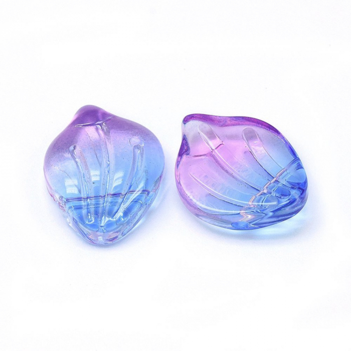 Zawieszka Szklana, Płatek, Rozmiar: Długość: 15mm, Szerokość: 12mm, Grubość: 4mm, Otwór 1mm Kolor: Liliowo-błękitny, 5szt/opakowanie