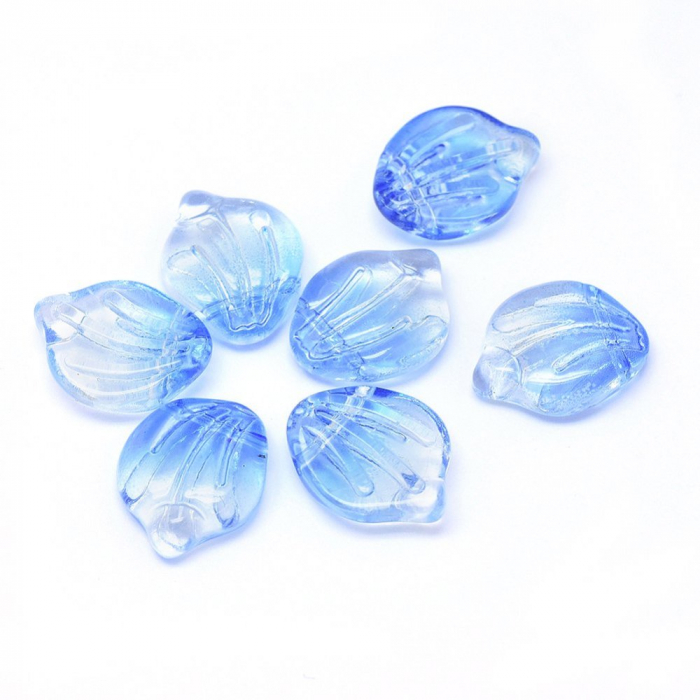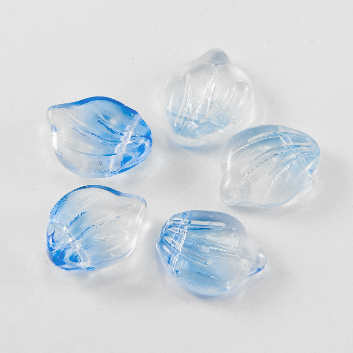 Zawieszka Szklana, Płatek, Rozmiar: Długość: 15mm, Szerokość: 12mm, Grubość: 4mm, Otwór 1mm Kolor: Chabrowy, 5szt/opakowanie