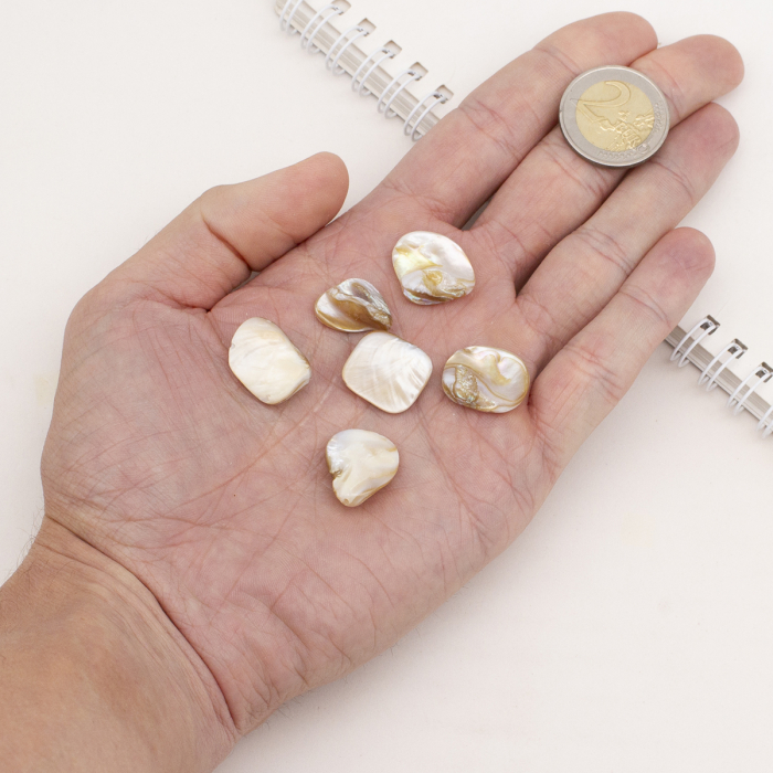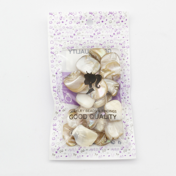 Koraliki z masy perłowej rzecznej w formie bryłek to wspaniały naturalny materiał o delikatnym połysku i wykwintnej fakturze. Każda bryłka ma niepowtarzalny kształt i rozmiar, co nadaje produktom oryginalność i naturalne piękno. Naturalna masa perłowa zachowuje swoje naturalne odcienie – od mlecznobiałego po kremowy z delikatnymi odcieniami charakterystycznymi dla wysokiej jakości materiału. Koraliki te nie mają dziur, dzięki czemu idealnie nadają się do inkrustacji, projektów artystycznych i tworzenia biżuterii na zamówienie.