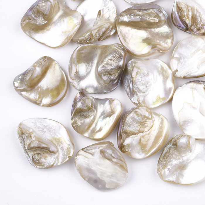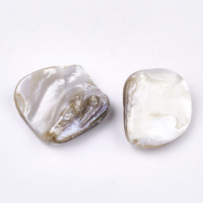 Koraliki Naturalna Rzeczna Masa Perłowa, Samorodki, 18-22x15-21x7.5-10mm, około 20szt/50g (13WB18892)
