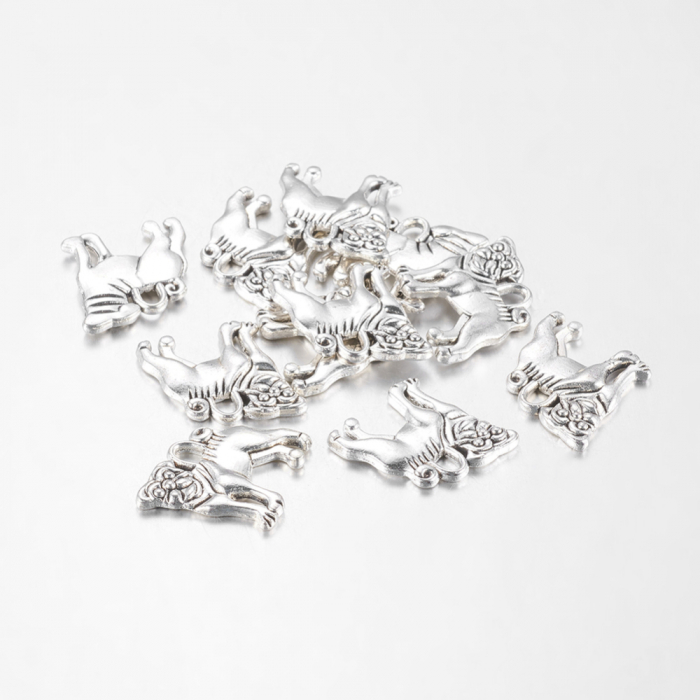 Zawieszka Buldog Stop Metalowy, bez Ołowiu, Rozmiar: Długość 16mm, Szerokość 15mm, Grubość 2mm, Otwór 2mm. Kolor: Srebrny 10szt/opakowanie