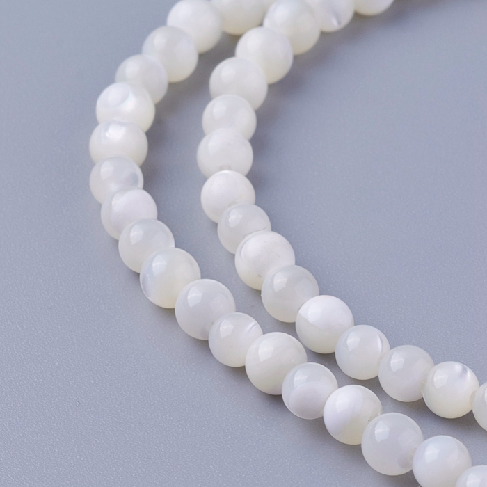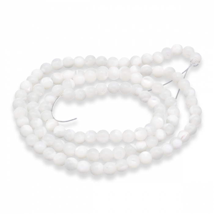 Koraliki z Muszli Morskiej, Naturalna Masa Perłowa, Okrągłe, na Nitkach Kolor: Biały