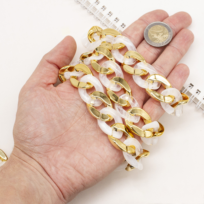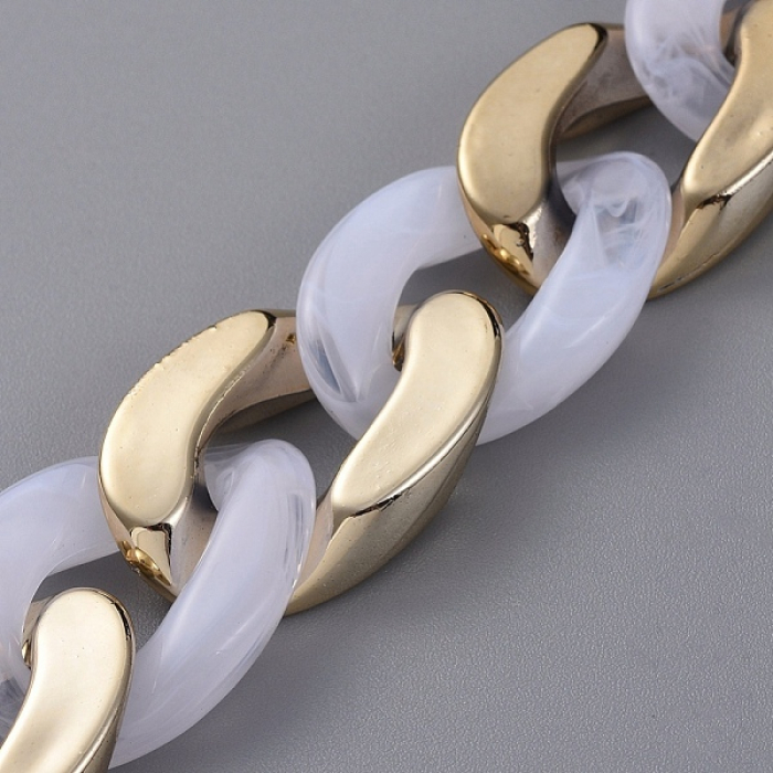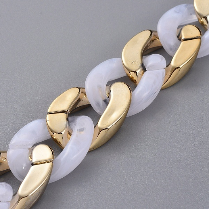 Łańcuszek Akrylowy Ręcznie Robiony 30x21x6mm Kolor: Biały Długość łańcuszka: 1m (13WB23707)