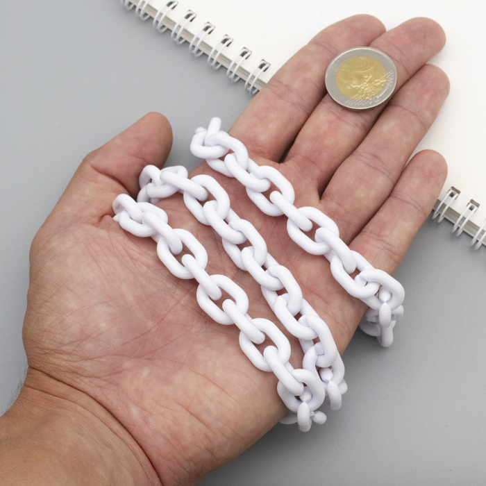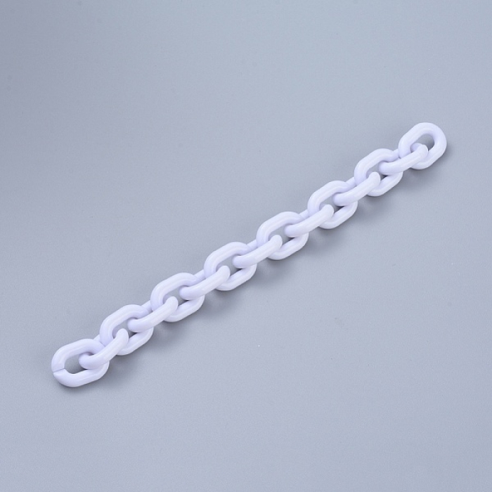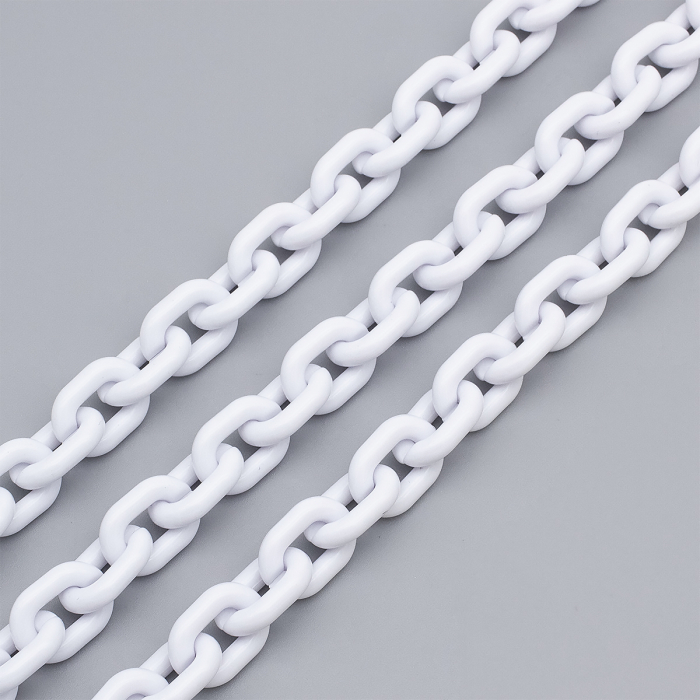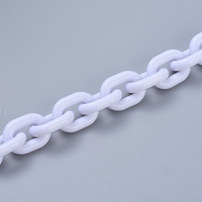 Łańcuszek Akrylowy, Ręcznie Robiony, Owal, Kolor: Biały, 19x14x4mm, Długość łańcuszka: 1m (13WB23710)