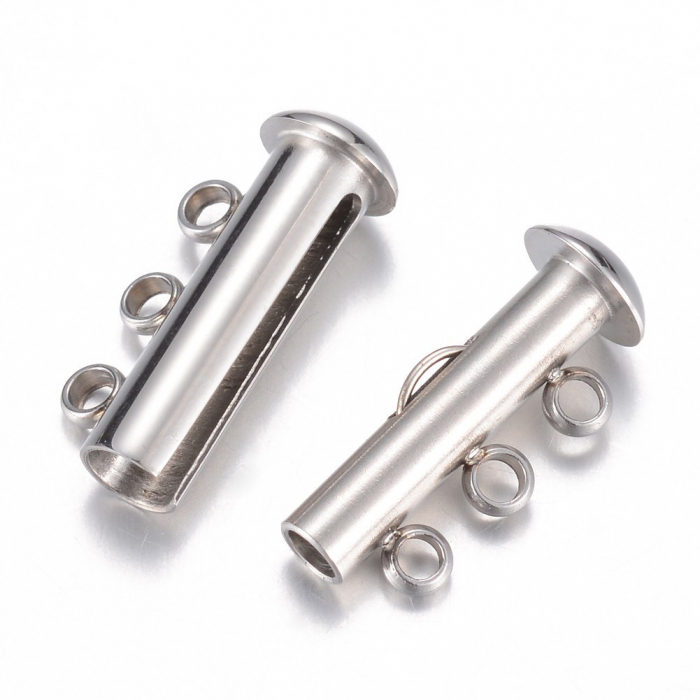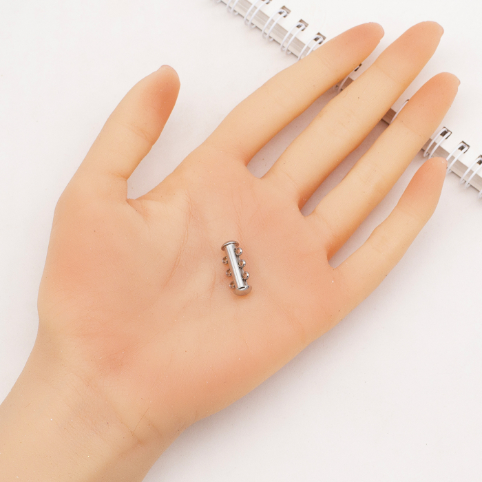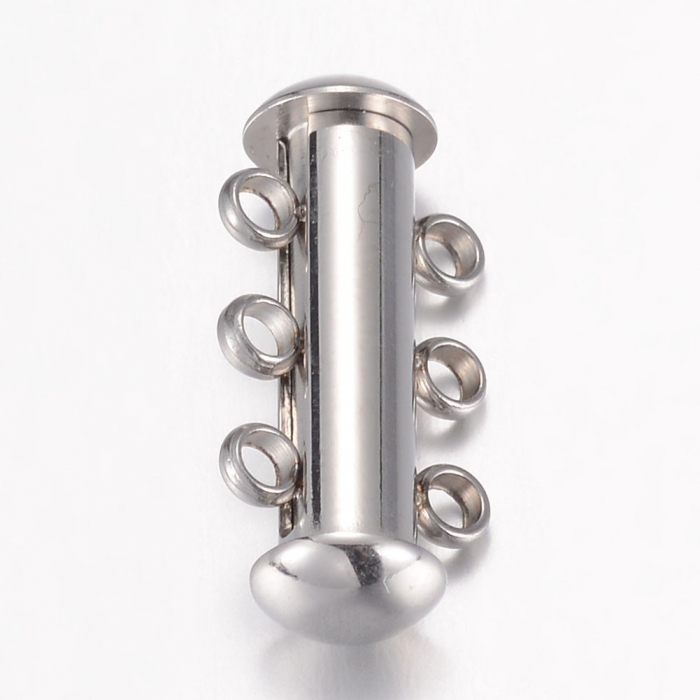 Zapięcie suwakowe ze stali nierdzewnej z 3 nitkami i 6 otworami to wygodny i niezawodny element okucia przeznaczony do tworzenia biżuterii wielorzędowej. Wykonane z wysokiej jakości stali nierdzewnej, zapięcie jest mocne, odporne na korozję i trwałe. Minimalistyczny design i schludne otwory sprawiają, że jest uniwersalny i pasuje do każdego stylu akcesoriów.