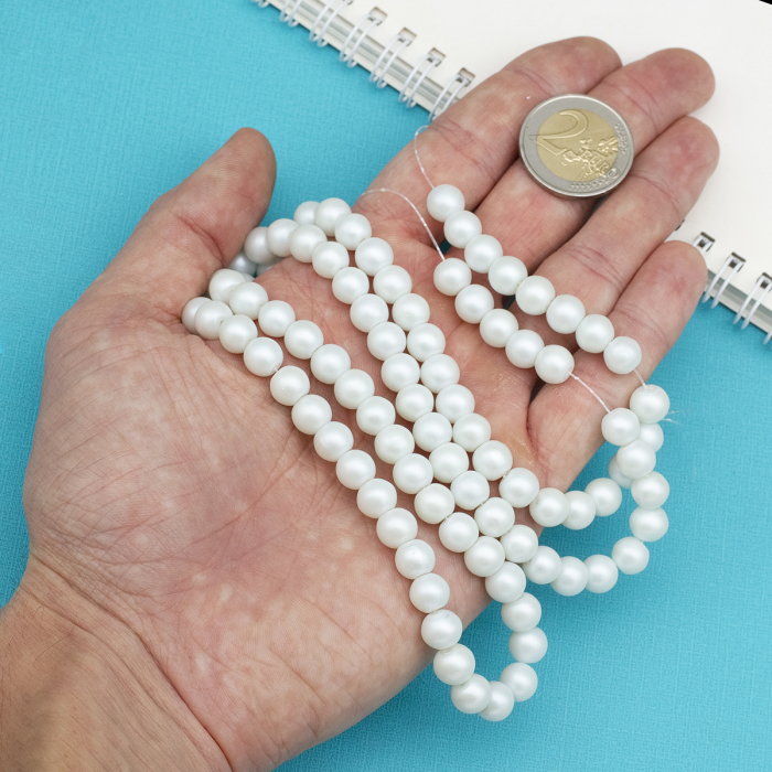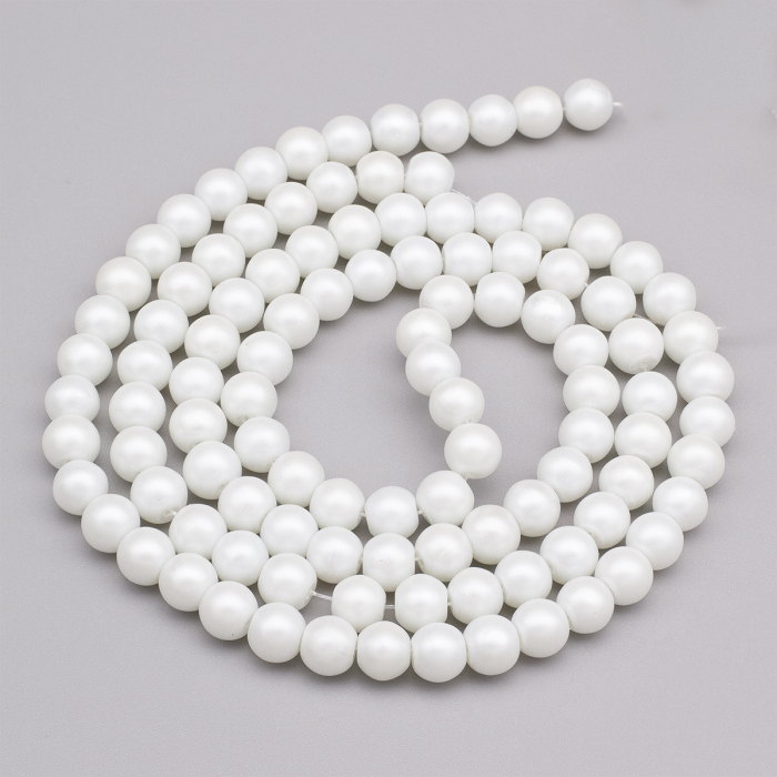 Perły Koraliki Szklane Matowe, Okrągłe Kulki, Białe, 8mm, 100szt/80cm/sznur (13WB26498)Kolor: