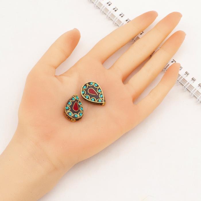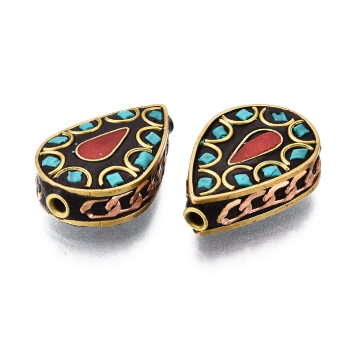 Koraliki Indonezyjskie Glina Polimerowa i Mosiądz Okrągłe Płaskie 28-28.5x7.5-8.5mm 2szt (13WB27249)