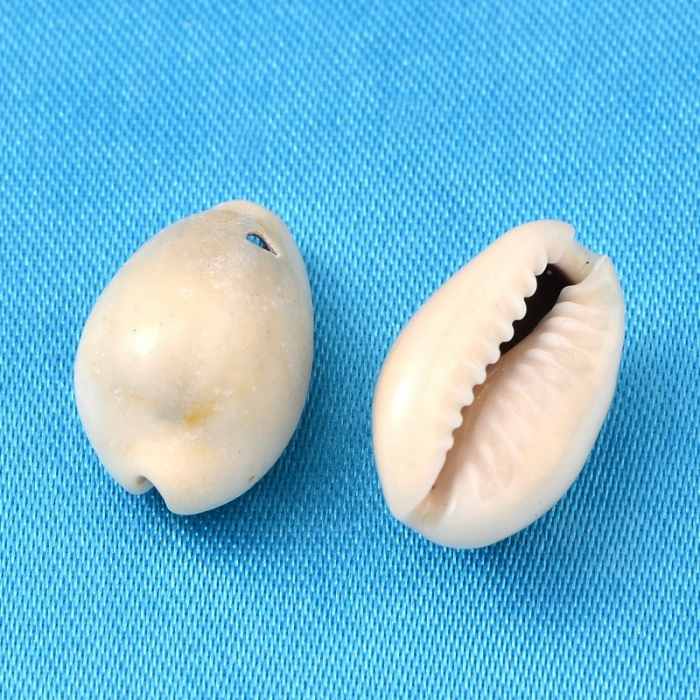 Hole Cowrie Shells to naturalne wisiorki i wisiorki wykonane z muszelek z rodziny kauri (Cypraeidae). Mają gładki, owalny kształt, charakterystyczną postrzępioną dziurkę i jasnoBeżowy odcień, co czyni je idealnym materiałem do tworzenia biżuterii i elementów dekoracyjnych. Te naturalnie występujące muszle dodają wyrafinowanego marynistycznego akcentu i nadają się do różnorodnych kreatywnych projektów.