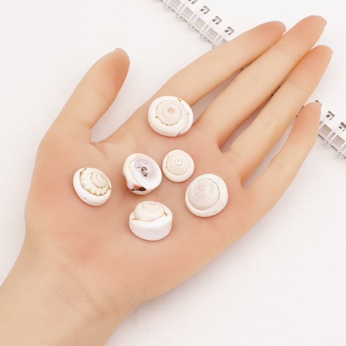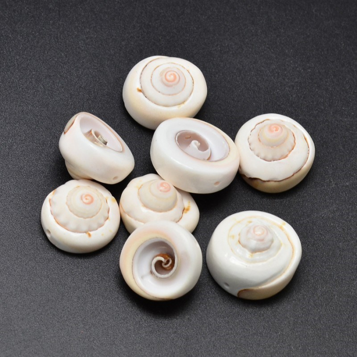 Koraliki z naturalnej muszli „Oko Śiwy” to wykwintny i rzadki materiał do tworzenia wyrafinowanej biżuterii. Koraliki te wykonane są z naturalnej muszli, która nie została farbowana i zachowuje swoje naturalne odcienie - od mlecznej bieli po delikatny beż. Gładka powierzchnia i charakterystyczny skręt nadają tym koralikom niepowtarzalny wygląd, a ich naturalne pochodzenie sprawia, że każdy egzemplarz jest wyjątkowy. Ta rzadka muszla jest symbolem spokoju ducha i wewnętrznej równowagi.
