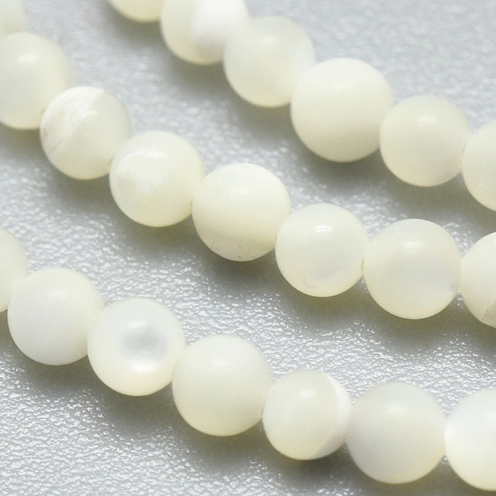 Koraliki z Muszelek Morskich Naturalna Masa Perłowa Okrągła, na nici Kolor: Biały