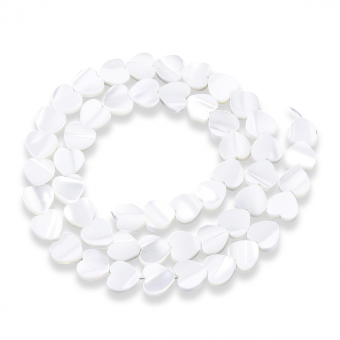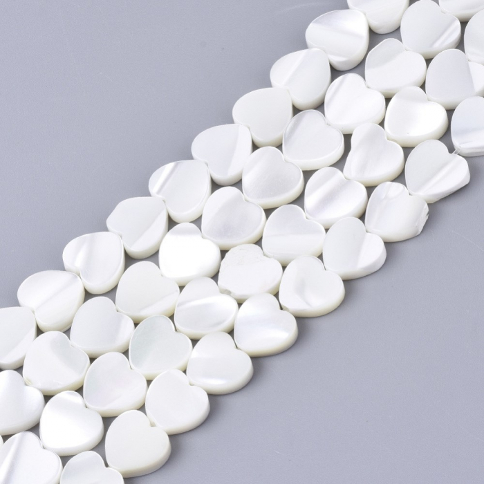Koraliki z Muszli Morskiej, Naturalna Masa Perłowa, Serce, na Nitkach Kolor: Biały