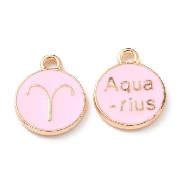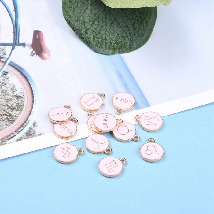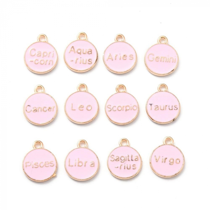 Zestaw Wisiorek Znaki Zodiaku Emalia 15x12x2mm Otwór 1.5mm Kolor: Różowy 12szt/ Set (13WB27898)