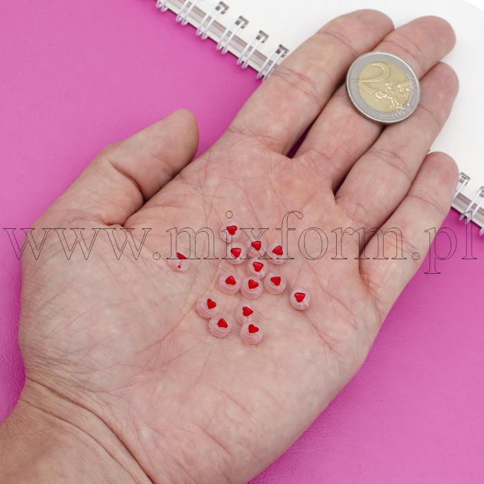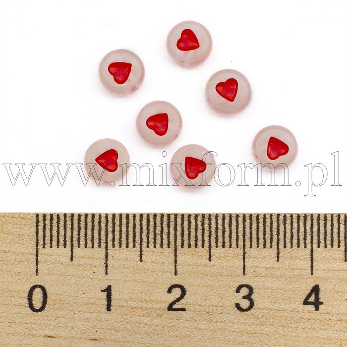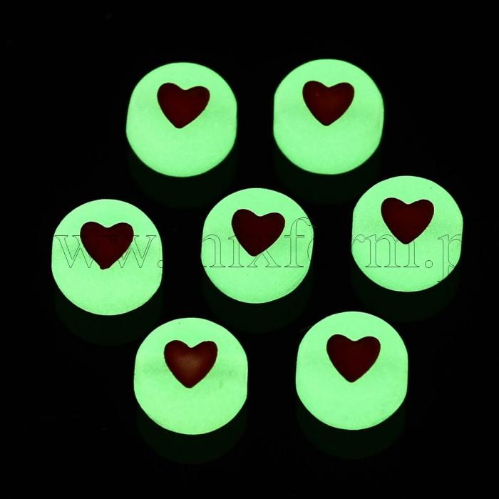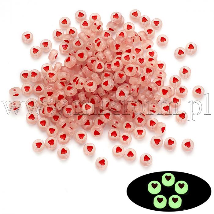 Koraliki Akrylowe, Świecące w Ciemności, Serce, Płaskie Okrągłe, Czerwony, 7x3.5mm, 185szt/25g (13WB28630)Kolor: