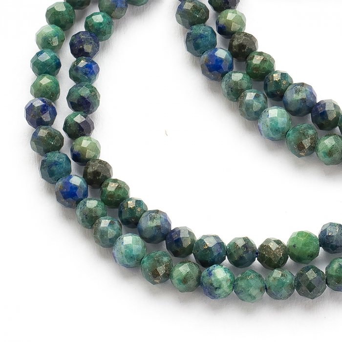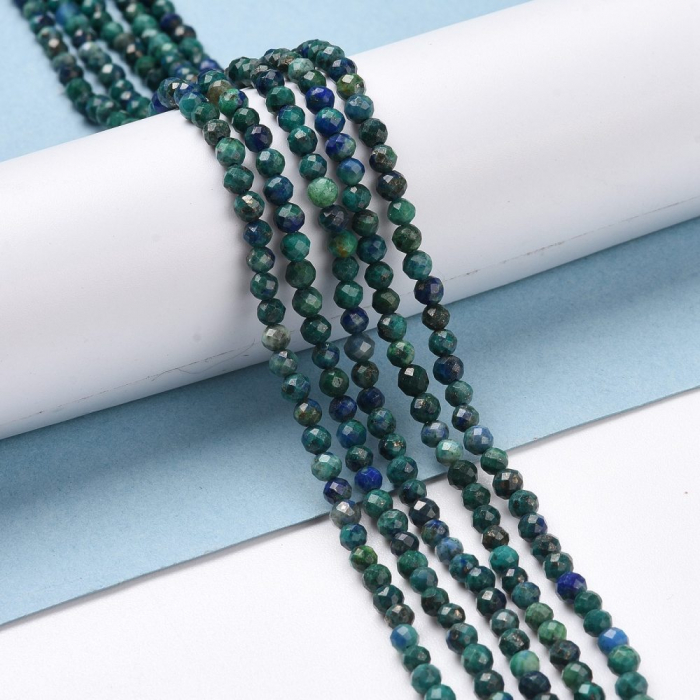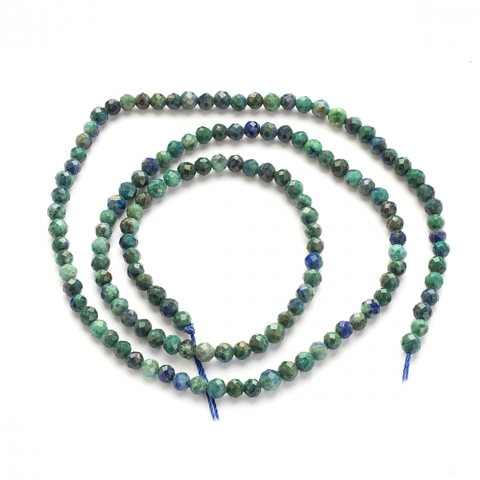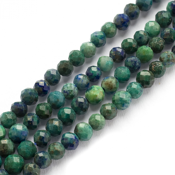 Koraliki Naturalna Chrysocolla i Lapis Lazuli Okrągłe, Fasetowane, 3-3.5mm, około 130szt/37cm/nić (13WB28640)
