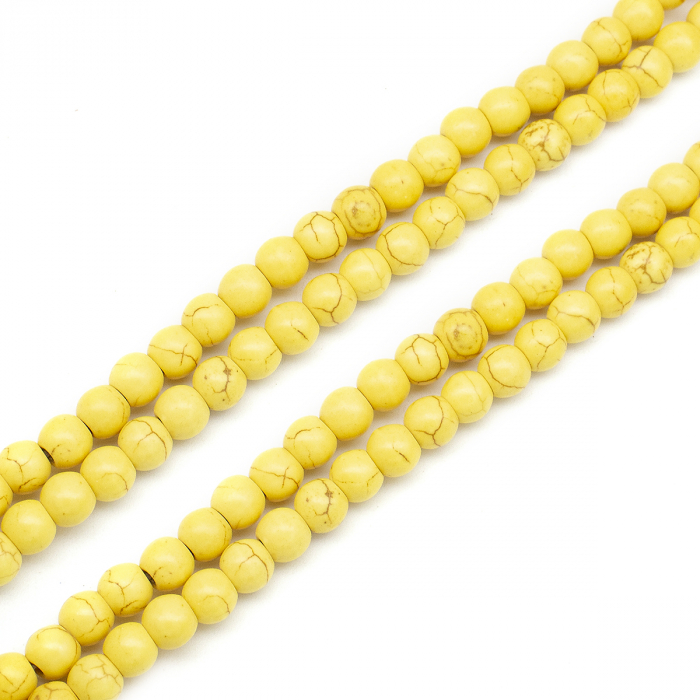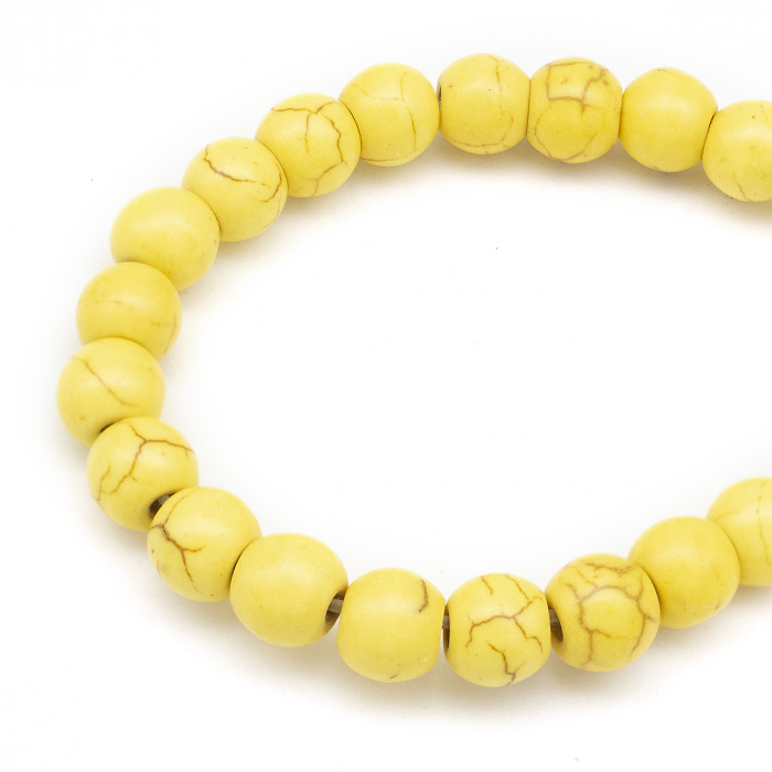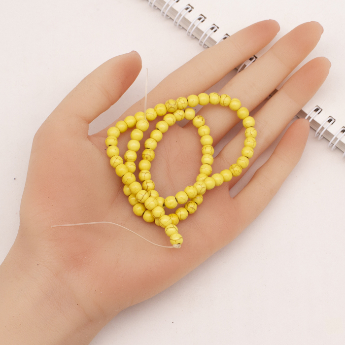 Koraliki Syntetyczny Turkus Okrągłe, Barwione, Żółte, 6mm, otwór 1mm, około 67szt/40cm/sznur (3WB3521)